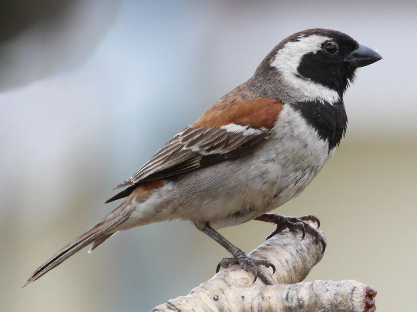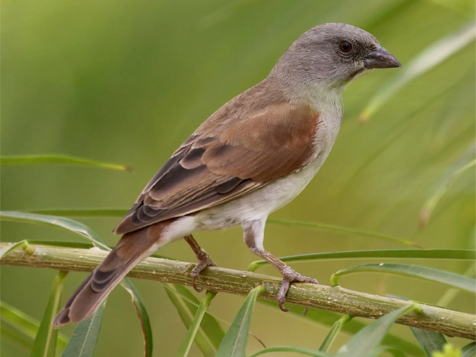 Inhabiting the semi-arid regions of South Africa, this sparrow is commonly found in savannas and open woodlands. Its gray head and adaptability make it a familiar bird in southern regions.
