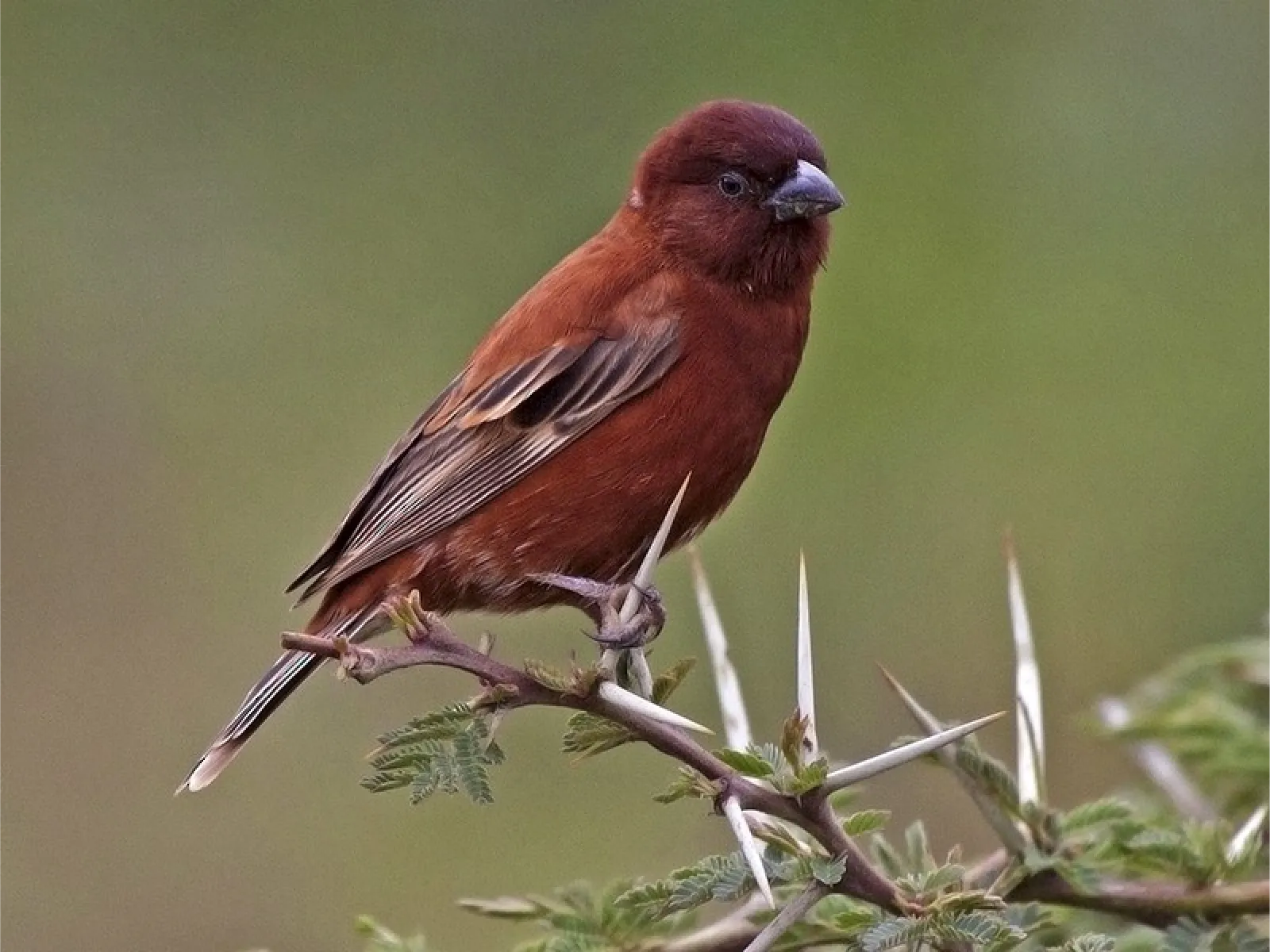 Residing in grasslands and open woodlands across sub-Saharan Africa, the Chestnut Sparrow prefers arid, semi-desert habitats. Its distinctive chestnut-colored body makes it easily identifiable in the wild.