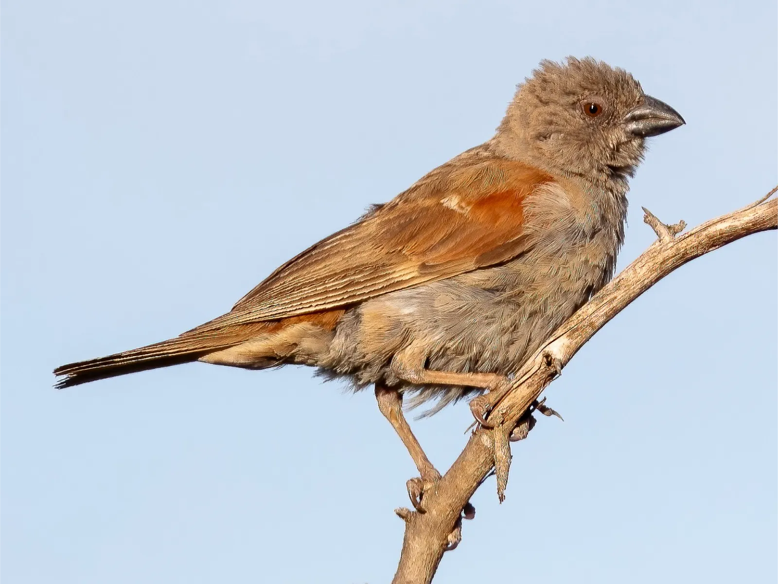 Native to East Africa, this sparrow inhabits dry, scrubby areas, where it can find seeds and grasses to feed on. Its large, parrot-like bill makes it easy to identify among its peers.