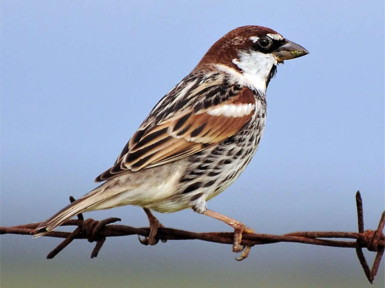 Native to Spain and parts of North Africa, this sparrow is found in open agricultural areas and woodlands. It thrives in human-modified landscapes, often seen in flocks around farms and orchards.